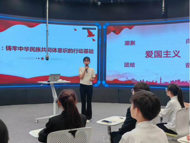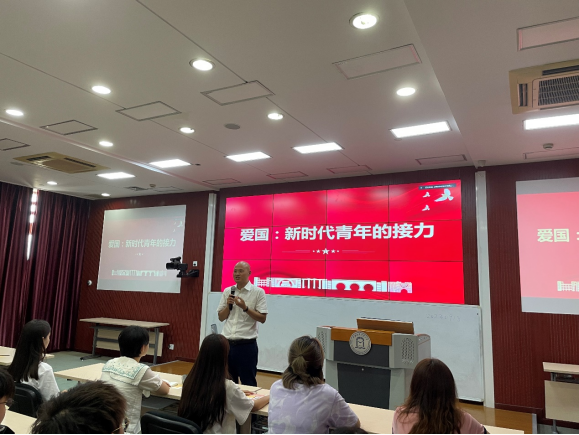 课堂上,上海对外经贸大学马克思主义学院罗国辉副教授通过古往今来的事例,从何为爱国、为什么要爱国、怎样爱国三个方面系统讲解了新时代爱国主义的内涵,以及青年大学生的爱国体现与责任担当。bat365中文官方网站马克思主义学院许科龙波副教授主讲,她结合拉齐尼·巴依卡一家三代人为国戍边的英雄事迹,以及红其拉甫边检站前哨班的感人视频,讲述了铸牢中华民族共同体意识是爱国主义的行动基础,强调弘扬爱国主义精神的重要性。结合红站的历史和自己的亲身经历,红其拉甫边检站张凤梓警官讲述了一代代红其拉甫人的坚守换来祖国国门边境的和平稳定,她表示自己在移民管理这个崇高事业中因守卫国家安全而感到自豪。