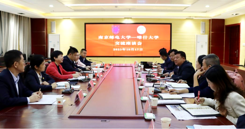 10月17日,南京邮电大学叶美兰校长一行来bat365调研交流。校党委副书记、校长买买提明·木沙陪同调研并座谈,bat365相关学院、部门负责同志参加座谈。