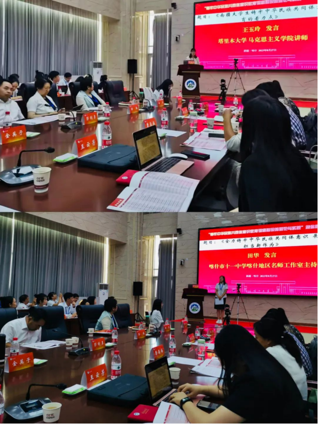 在交流研讨环节,来自新疆大学、新疆师范大学、阿克苏职业技术学院、克州第二中学、和田第二中学等疆内大中小学的19名教师代表作了交流发言。