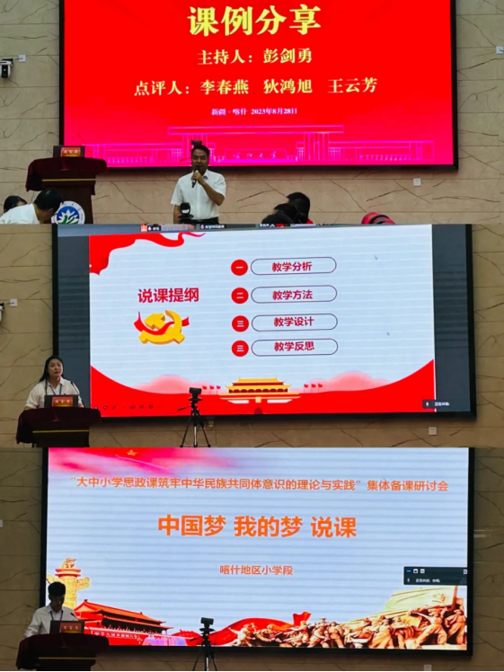 为切实发挥课堂教学的示范引领作用,本次集体备课会还专门设置了“课例分享”环节。来自自治区、喀什地区名师工作室的6名成员围绕“中国梦”这一主题,分小学、初中、中职、高职、高中、大学等学段进行课例分享。3名专家对每一学段的课例给予了全面、系统、专业的点评。