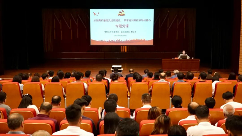 7月10日下午,校党委常委、组织部部长曹红琴同志以“加强高校基层党组织建设,筑牢党对高校领导的基石”为题讲授专题党课,各级党组织书记、教职工党员代表200余人参加。