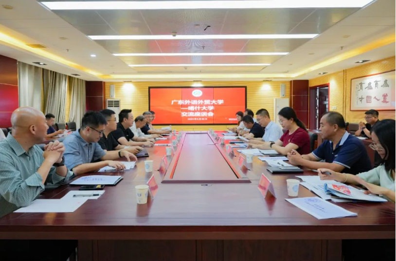 6月26日,广东外语外贸大学党委副书记唐锐一行来bat365调研交流,校党委常委、副校长罗浩波陪同调研并座谈,bat365相关部门、学院代表参加此次座谈。