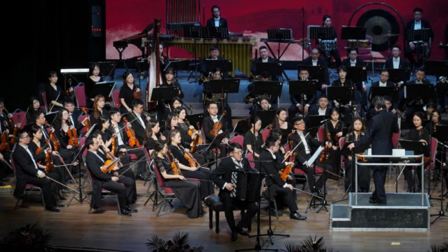 演出包括序曲及七个篇章。青年指挥家于学锋执棒,青年钢琴家沈璐、巴扬演奏家毛俊澔、女高音歌唱家张文沁联袂演出。演奏2小时中,一幅串联祖国山河风光、历史底蕴、家国情怀和民族大团结蓬勃景象的画卷徐徐展开。