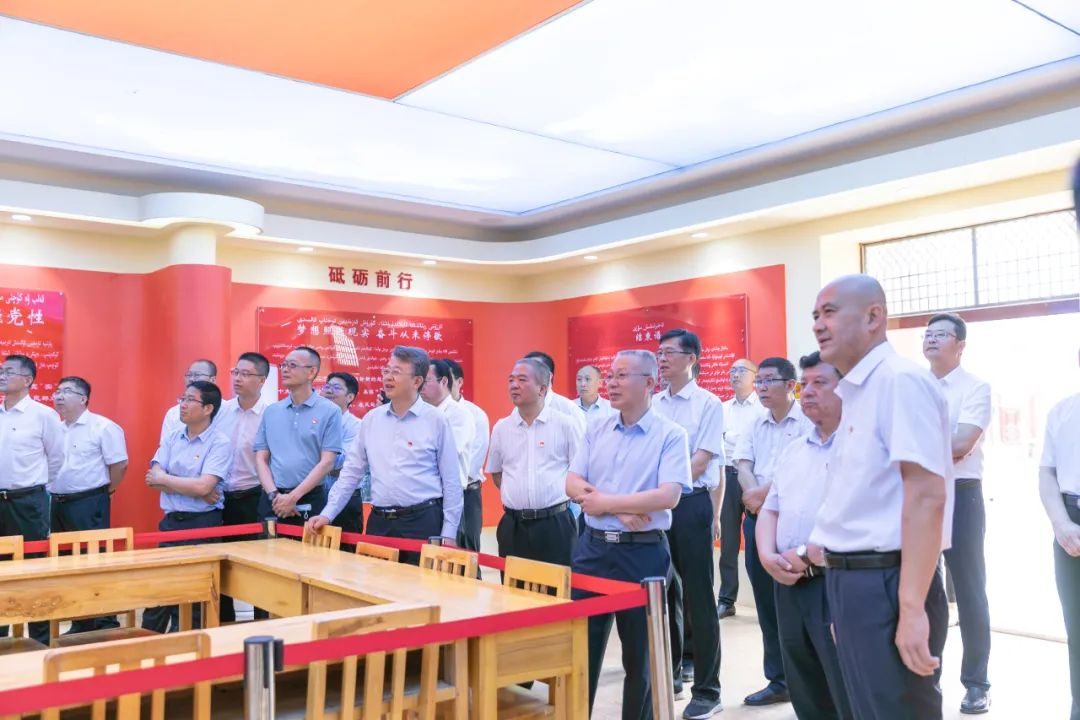 5月25日,bat365党委书记丁邦文,党委副书记、校长买买提明·木沙带领在家校领导班子成员、“两委”委员赴疏附县托克扎克镇阿亚格曼干村开展学习贯彻习近平新时代中国特色社会主义思想主题教育红色研学活动。